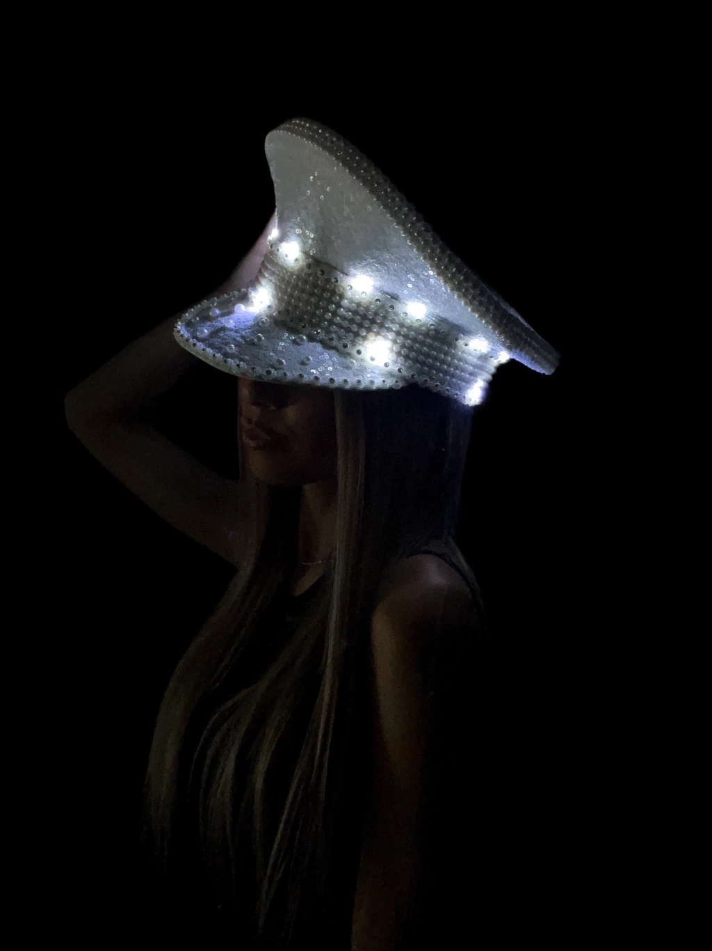 Nuestro Sombrero Almirante Premium Blanco con LED es pura elegancia y brillo.