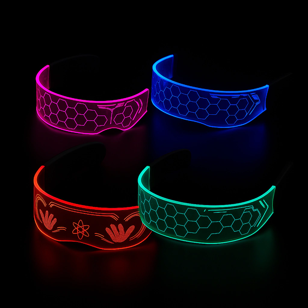 ¡Llevá tu look de fiesta al siguiente nivel con estos anteojos FULL LED! Con diseños geométricos y detalles luminosos en colores intensos (fucsia, azul, rojo y verde agua), son el accesorio ideal para destacar en cualquier evento.