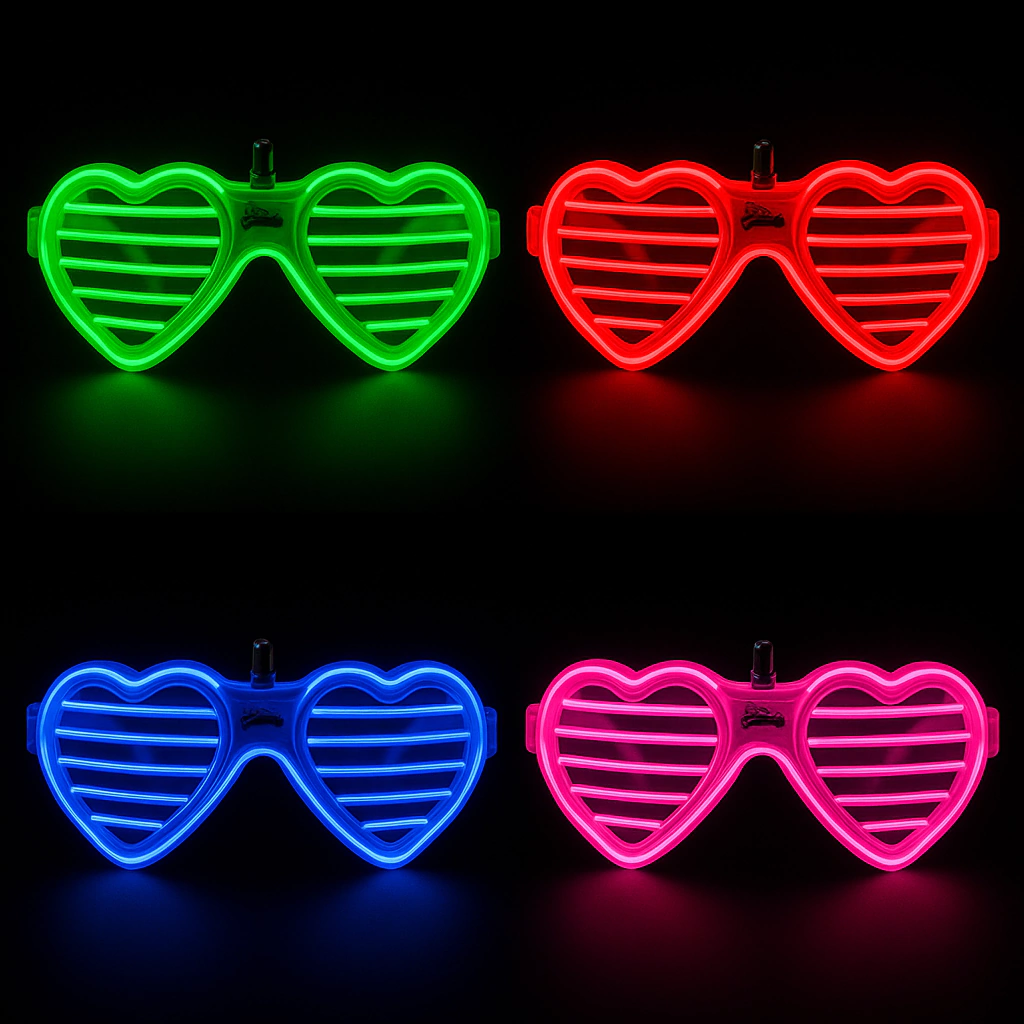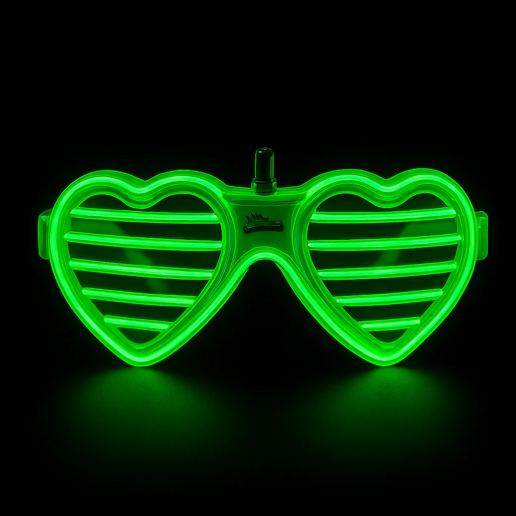 ¡Dale un toque explosivo de color y diversión a tus fiestas con nuestros Anteojos LED en forma de corazón! Su diseño es furor en eventos, cumpleaños y boliches. Están disponibles en 4 colores vibrantes: verde neón, rojo pasión, azul eléctrico y fucsia intenso.