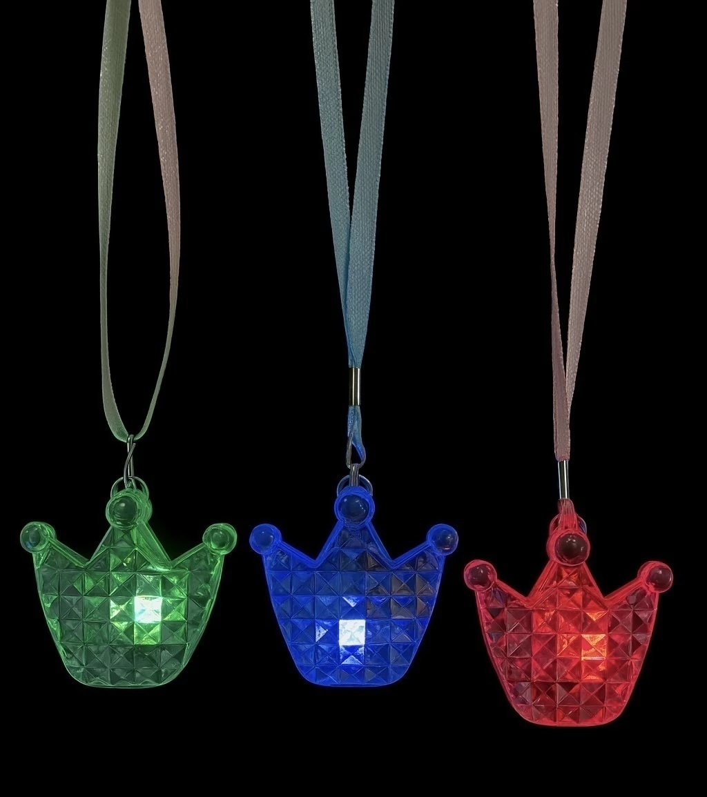 ¡Para reinar la pista con estilo! Estos colgantes en forma de corona vienen con luces LED súper brillantes en colores verde, azul y rojo, perfectos para destacar en cualquier fiesta.