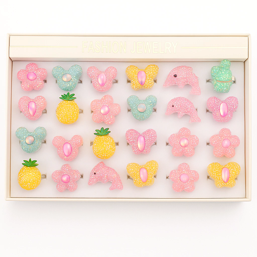 ¡La magia del brillo llegó en pack! 💫 Este set de 10 anillitos luminosos con strass es puro amor, color y diversión. Cada anillo tiene forma distinta: flores, piñas, mariposas, delfines, cactus y caritas kawaii. ¡Un combo perfecto para sorprender en fiestas, cumpleaños, UPD, egresados o como regalo!