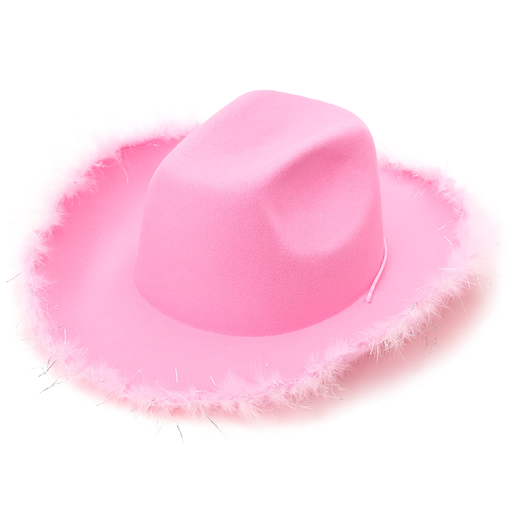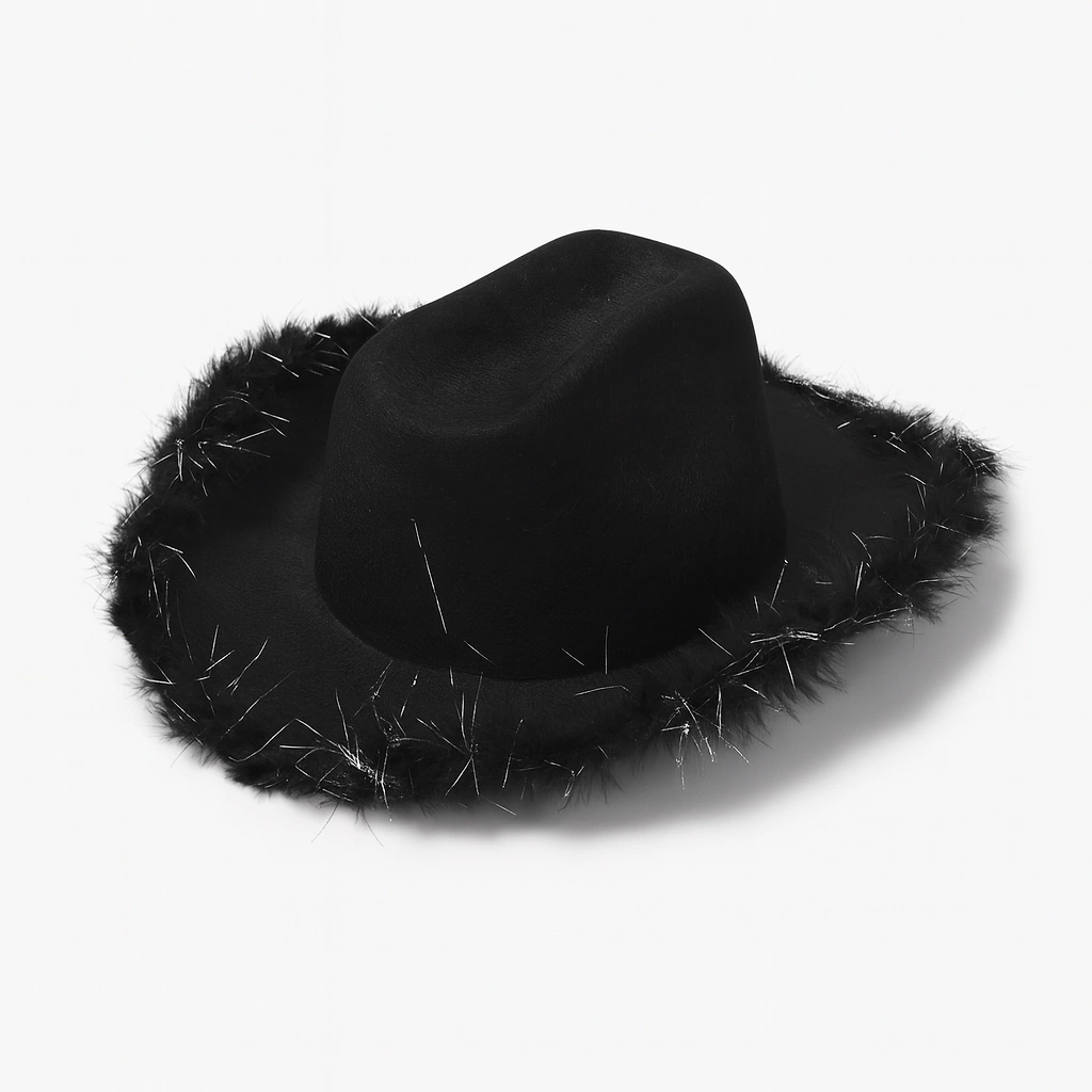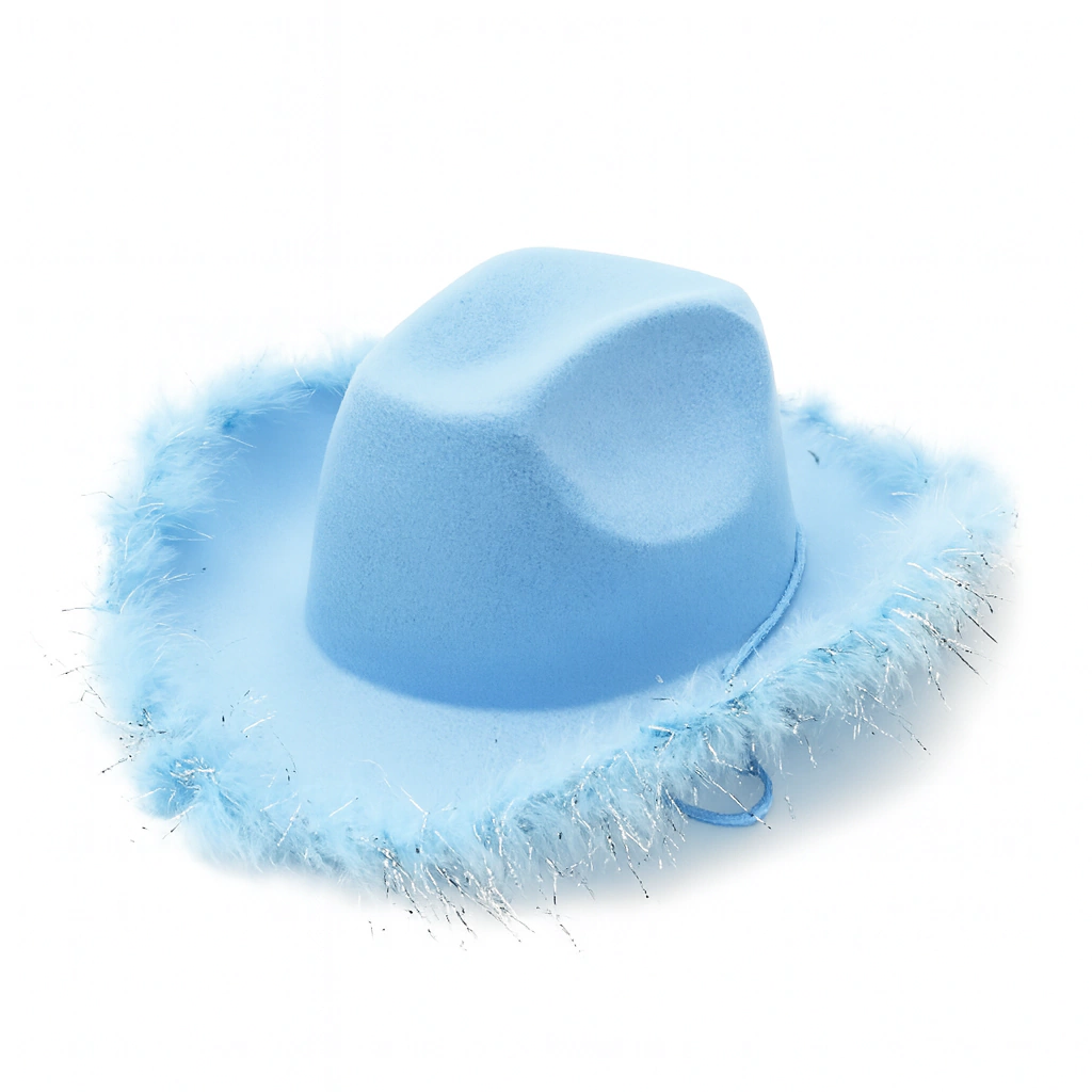 Nuestros sombreros cowboy combinan estilo y diversión con un diseño único. Confeccionados en materiales de calidad, tienen un borde decorado con plumas suaves y destellos brillantes que hacen que resalten bajo cualquier luz.