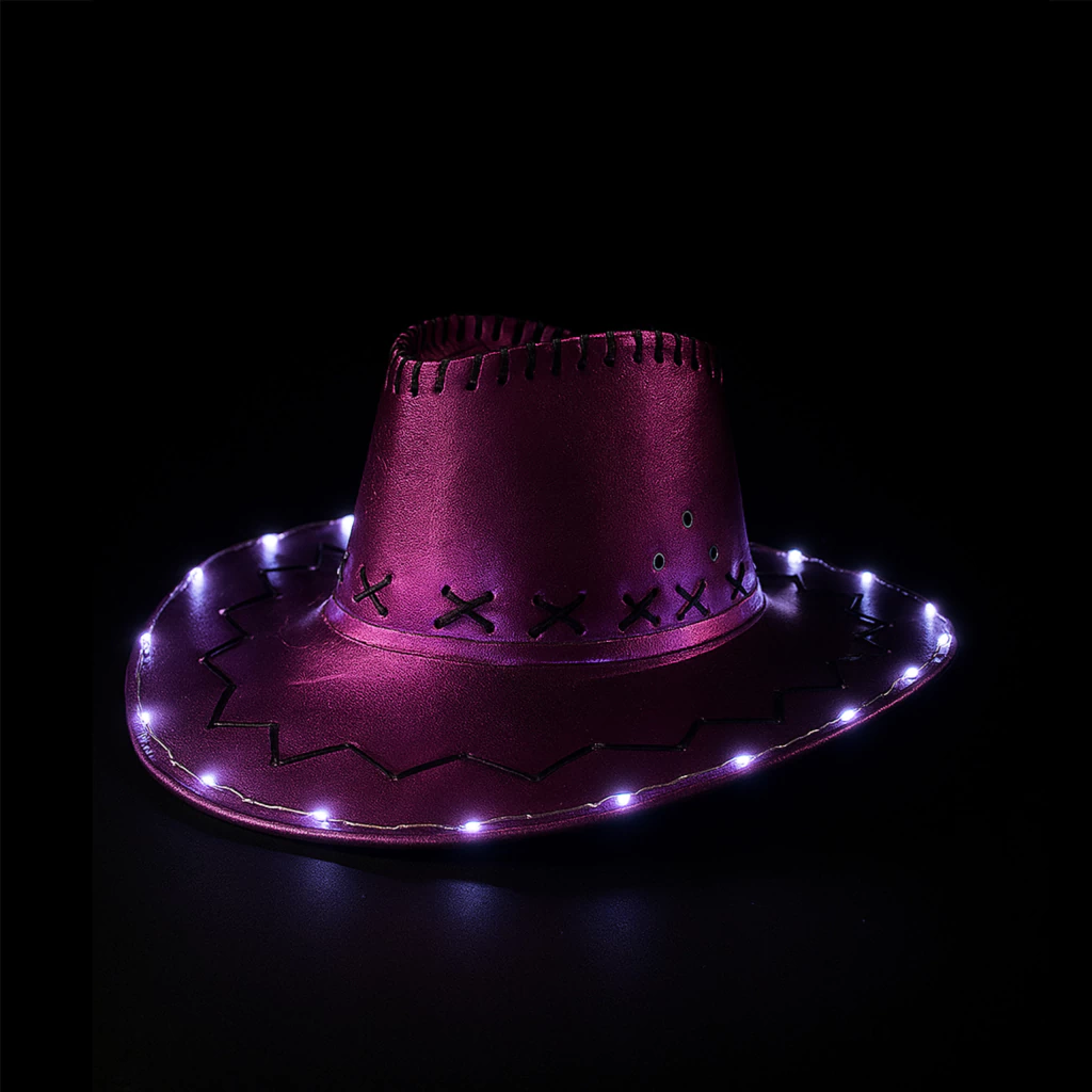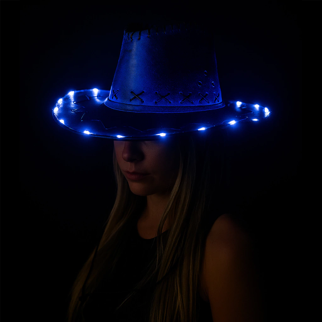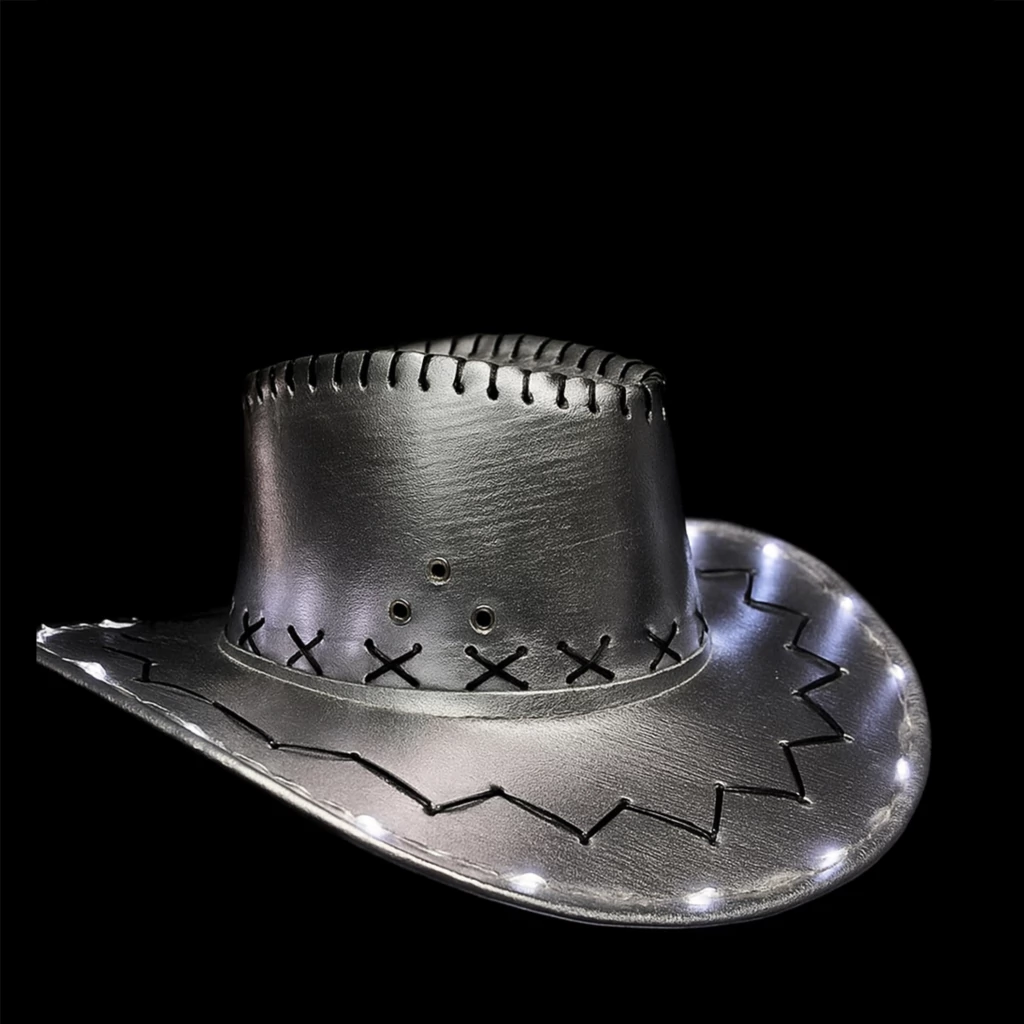 Este sombrero cowboy con luces LED blancas es para quienes no pasan desapercibidos. Con diseño metálico, terminaciones con costura estilo western y una vuelta entera de luces que lo hacen brillar de verdad. Perfecto para fiestas temáticas, eventos nocturnos y looks que marcan tendencia.