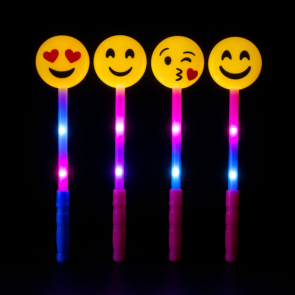 ¡Que la fiesta hable por vos! Estas varitas emoji con luces LED multicolor son el toque perfecto para llenar de onda cualquier evento.