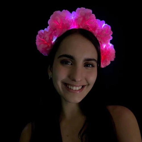 Esta vincha con flores tipo crisantemo y luces LED es el accesorio perfecto para cumpleaños, despedidas, fiestas al aire libre o cualquier celebración especial. Ligera, cómoda y con un brillo sutil que enamora.