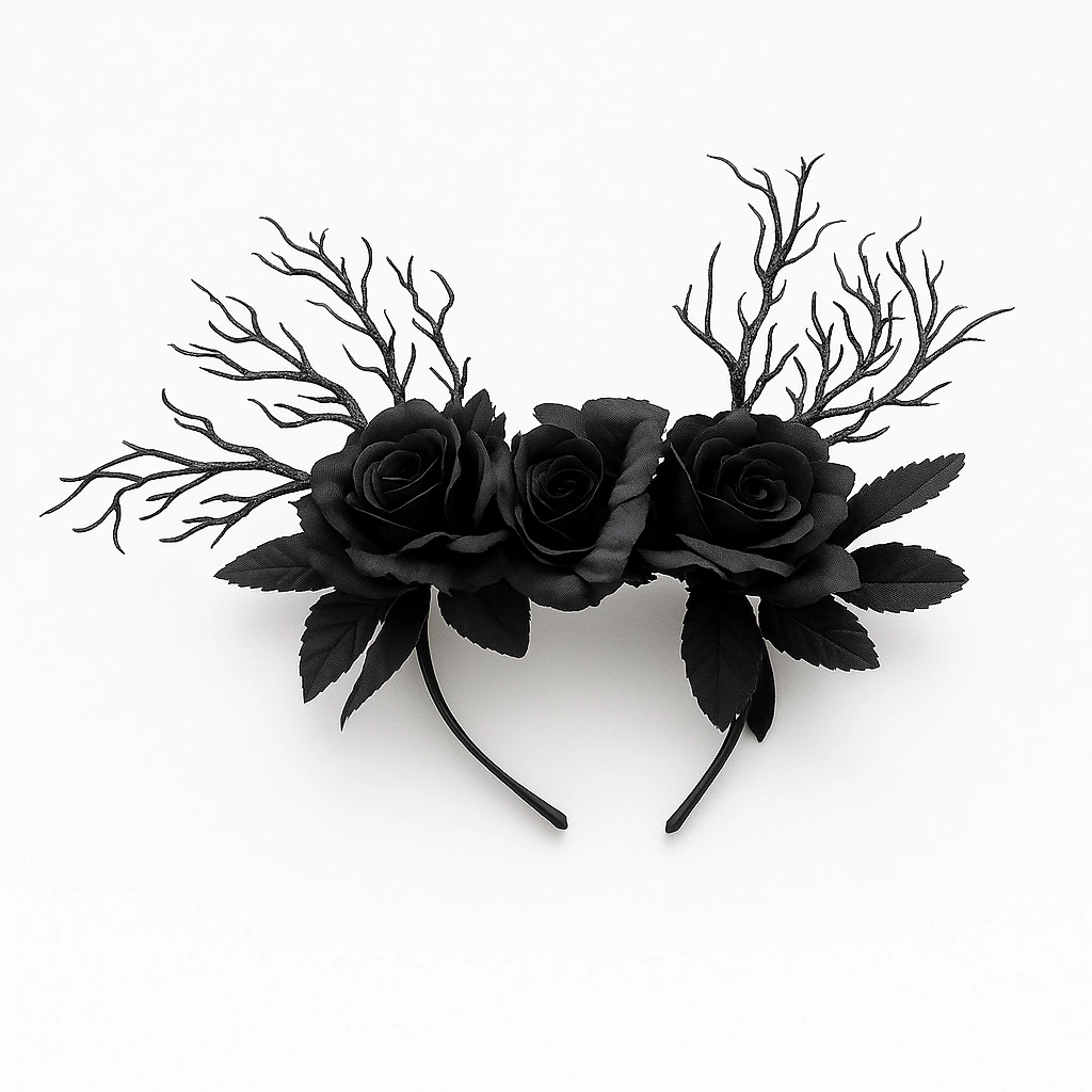Elegante vincha premium con flores negras y ramas estilo gótico, diseñada para quienes buscan un look sofisticado en Halloween. Fabricada con materiales de primera calidad, es cómoda, resistente y perfecta para acompañar disfraces de bruja, vampiresa o looks temáticos oscuros.