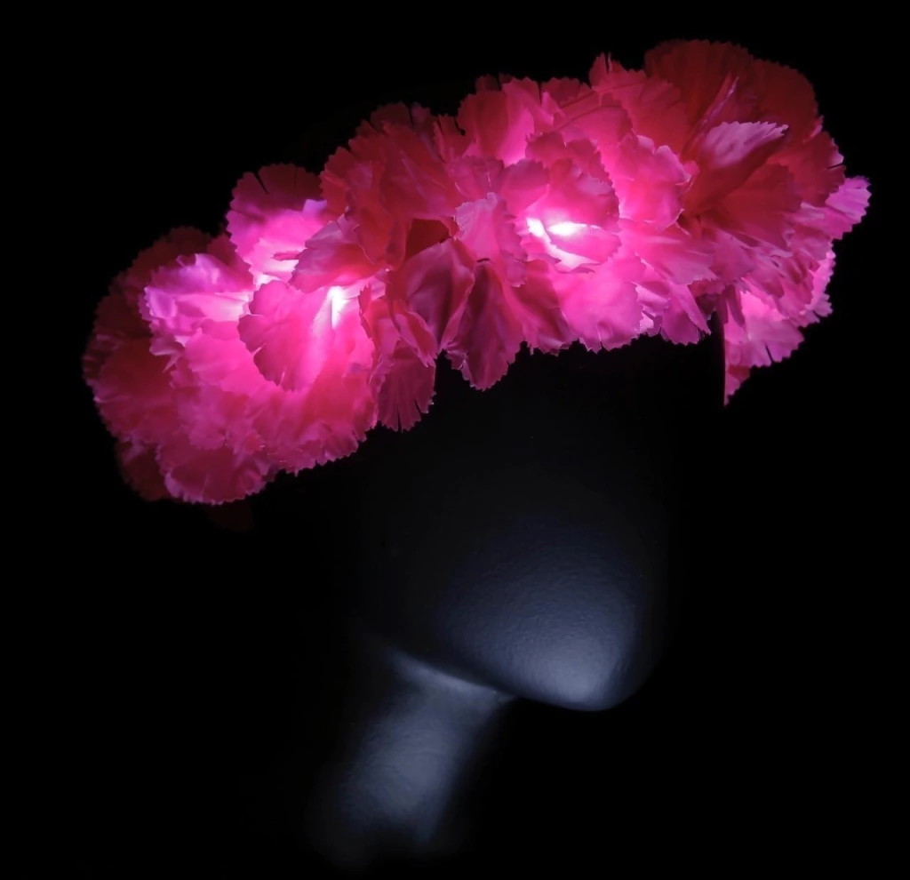 La clásica vincha de flores ahora luz LED para que tu outfit tenga ese toque único que no pasa desapercibido. Hecha en seda poliéster y disponible en muchos colores, es ideal para fiestas, despedidas, festivales y celebraciones llenas de energía.