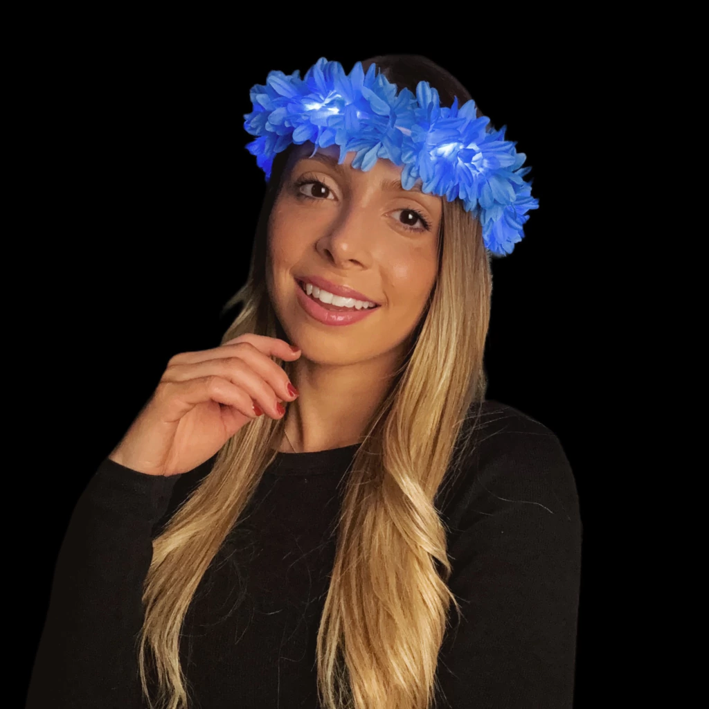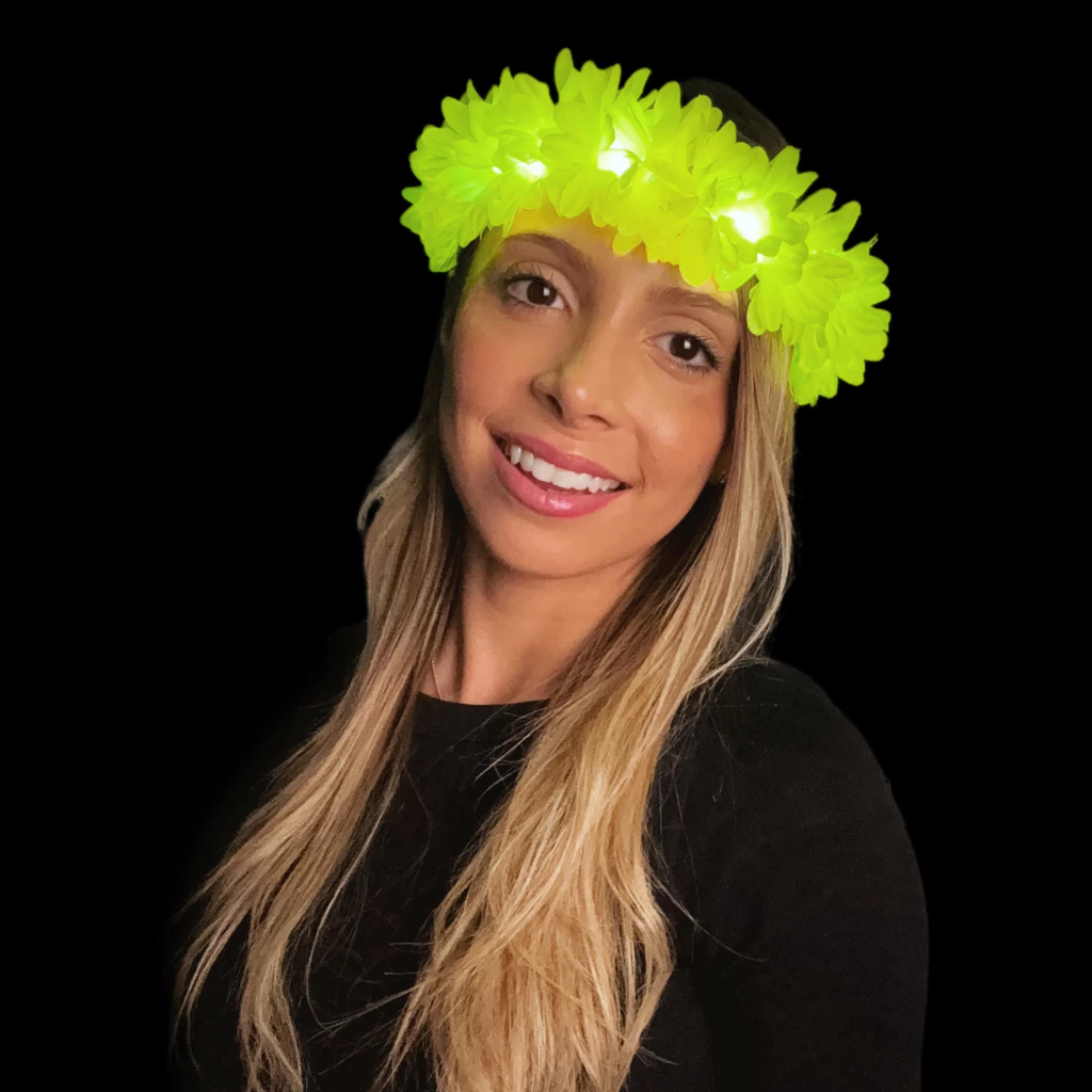 Con flores tipo margarita y luces led que iluminan tu look, esta vincha es ideal para eventos, fiestas, festivales y despedidas. Liviana, cómoda y súper brillante, perfecta para combinar con nuestros collares o pulseras led.